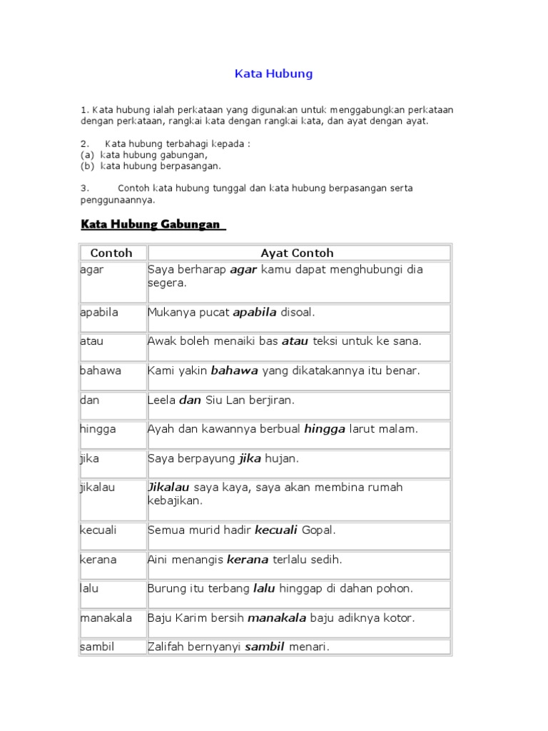 Kata hubung tahun 2 latihan tatabahasa(kata hubung tahun2). Kata penghubung atau konjungsi merupakan kata yang digunakan untuk menghubungkan antar kata dalam sebuah kalimat atau antar kalimat dalam sebuah paragraf. Kata jenis ini hanyalah yang. Banyak individu mempunyai kecerdasan emosi. Semoga perkongsian ini memberi manfaat kepada semua.